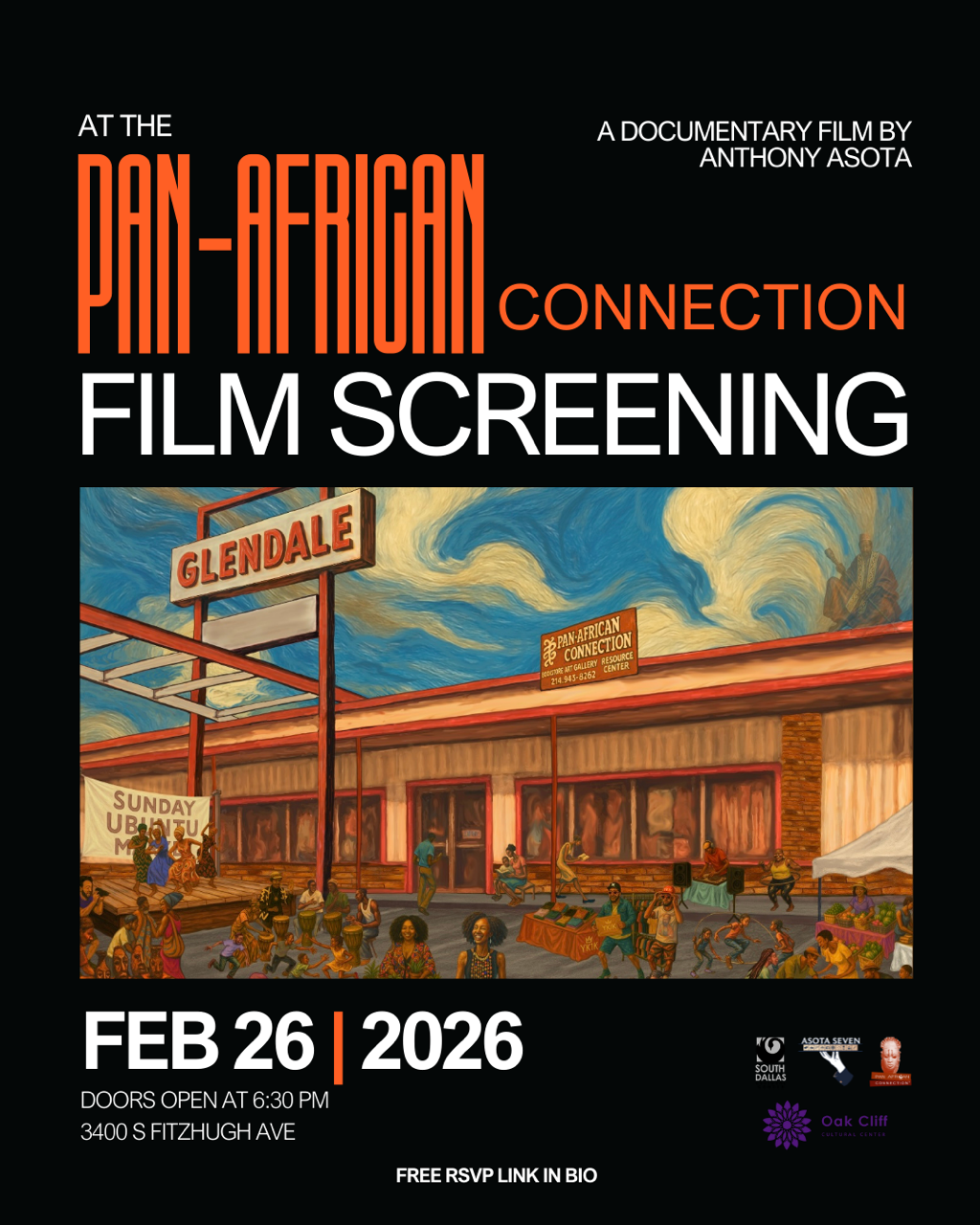 Dallas residents are invited to support At the Pan-African Connection and attend a screening during Black History Month on Thursday, February 26 at 7:00 p.m. at the South Dallas Cultural Center. Tickets are $8 and can be purchased on Eventbrite. Following the screening, a moderated discussion with Asota and local community leaders will be held.