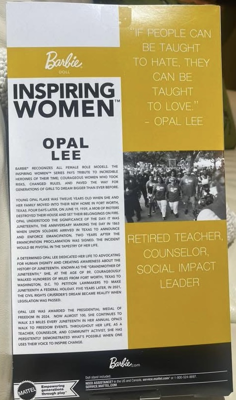 Dr. Opal Lee is our national treasure right here in Ft. Worth. She is still fighting on at 99 years young and Mattel saw fit to honor her with her very own Barbie Doll! The doll will be apart of the Inspiring Women Collection. We can’t think of a more deserving individual.